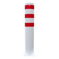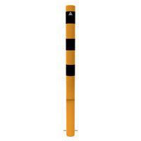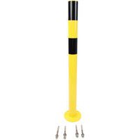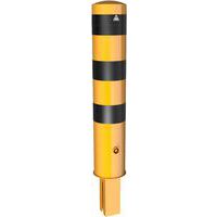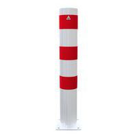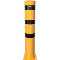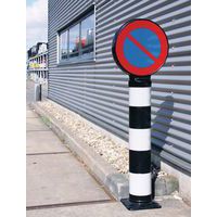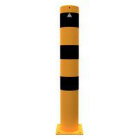 Poteau de protection en acier multi-usages. Couleurs visibles permettent de bien signaler les dangers. Fixation via platine à sceller.