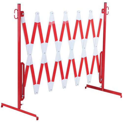 Barrière extensible en acier avec pieds des 2 côtés permettant la condamnation temporaire d'une zone dangereuse. L'alternance des couleurs attire l'attention des usagers et signale des dangers. Possibilité de rattacher plusieurs barrières entre elles. Prend peu de place une fois repliée. Certificat du TÜV.
