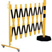 Barrière de protection extensible sur roulettes avec freins d'un côté et poteau de protection de l'autre. Permet de délimiter temporairement une zone interdite d'accès. Le poteau permet une mise en place stable des barrières dans les endroits où une fixation murale n’est pas possible. Poteau avec socle lourd de 8 kg. Certificat du TÜV.