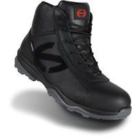 Baskets de sécurité hautes Run-R 400 High S3. Semelle PU2D, adhérente, résistante aux huiles et hydrocarbures. Tige cuir pleine fleur hydrofuge. Doublure polyester mesh 3D, respirante, absorbante et séchage rapide. Embout non métallique, plus léger que l’acier, non conducteur du chaud et du froid. Semelle anti-perforation non métallique, légère, souple, non conductrice du chaud et du froid. Semelle de propreté amovible, anatomique avec absorbeurs de chocs à l’avant et à l’arrière.