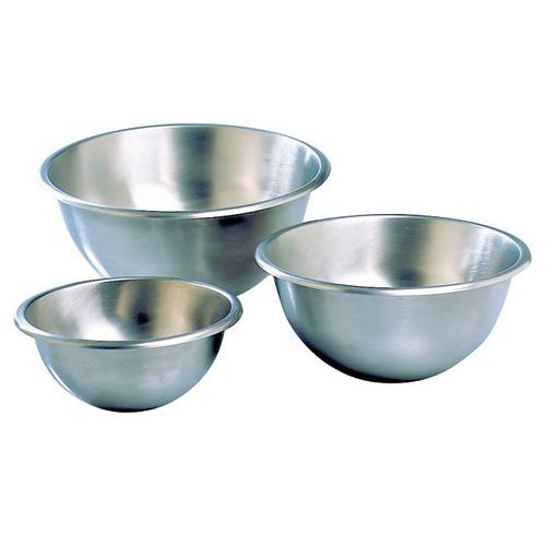 Bassine demi-ronde (Ou cul de poule). Acier inoxydable Bassines inox Bord ouvert demi-rond, facile à nettoyer. Fabriqué en France