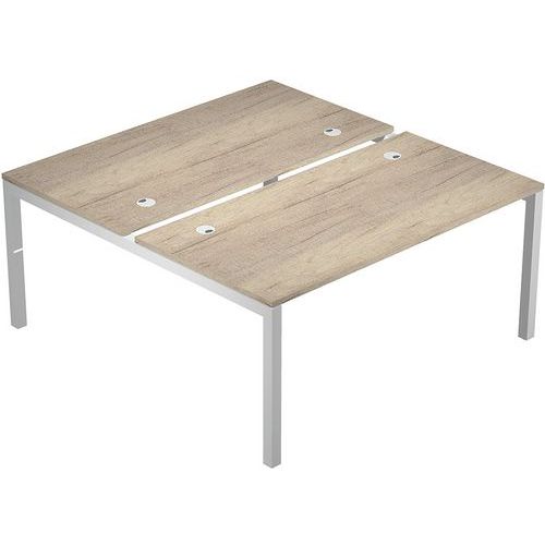 Bench partagé 2 postes Départ avec pied métal Trendy. Plateaux équipés de 2 opercules passe-câbles. Chants Abs antichoc 2mm.