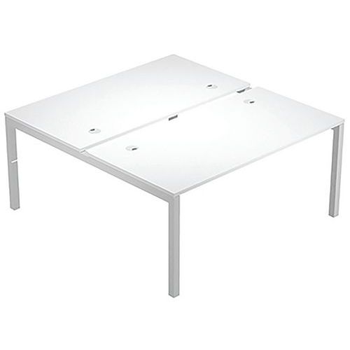 Bench partagé 2 postes Départ avec pied métal Trendy. Plateaux équipés de 2 opercules passe-câbles. Chants Abs antichoc 2mm.