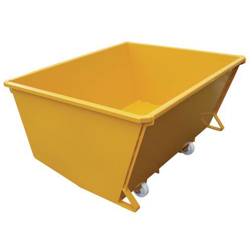 Benne autobasculante à hauteur réduite sur roulette, Capacité: 415 L, Matériau: Acier, Coloris: Jaune