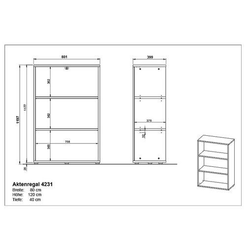 Bibliothèque GW-Agenda, Hauteur hors tout: 1200 mm, Largeur hors tout: 800 mm, Nb de cases: 3