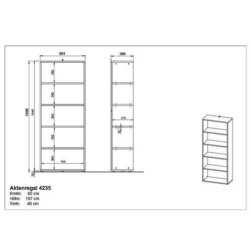 Bibliothèque GW-Agenda, Hauteur hors tout: 1970 mm, Largeur hors tout: 800 mm, Nb de cases: 5