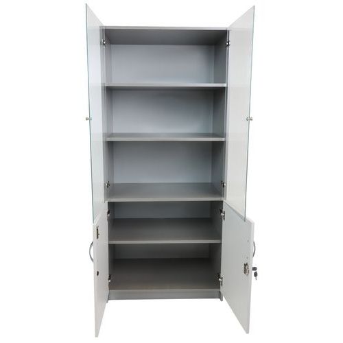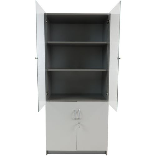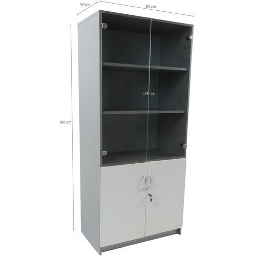 Bibliothèque Quatuor portes verre + portes pleines, Hauteur hors tout: 180 cm, Largeur hors tout: 80 cm