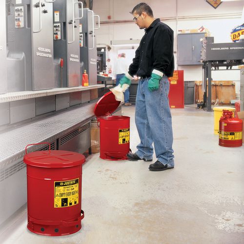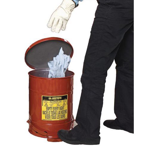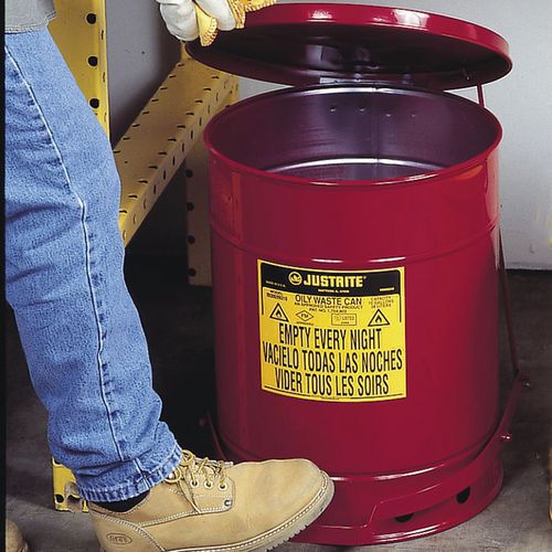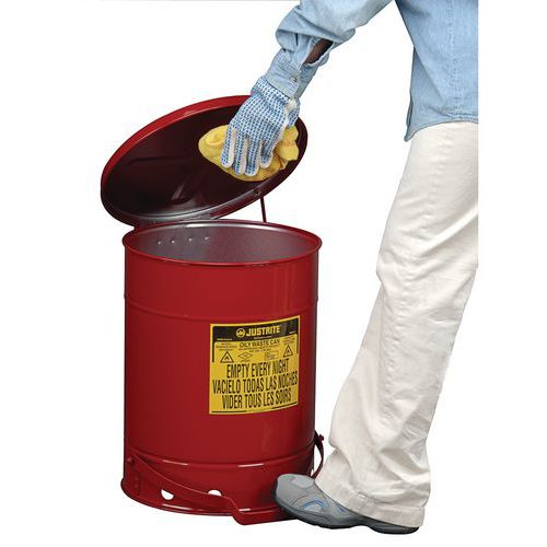 | Intitulé du produit | Bidon de déchets huileux rouge 80 L -Justrite, Capacité: 80 L, Ouverture: À pédale, Matériau: Métal |