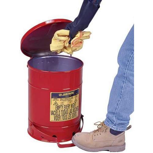 Pour la mise au rebut temporaire et en toute sécurité des chiffons imbibés ou des déchets inflammables.
