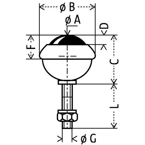 Bille de manutention inox, Charge maxi: 55 kg, Type de fixation: Tige filetée, Bille Ø: 25 mm