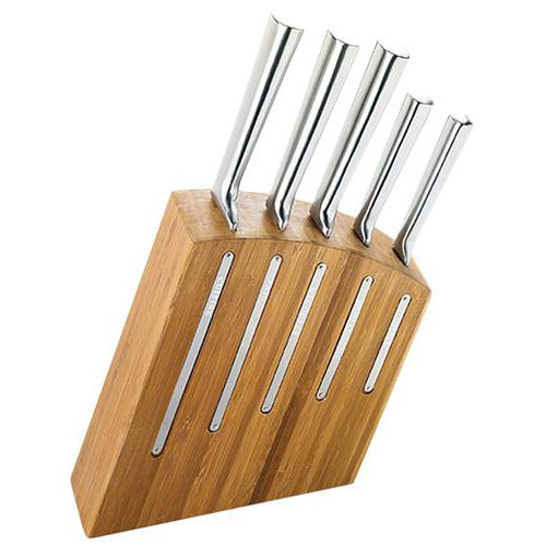 | Intitulé du produit | Bloc Bambou Kimono avec 5 couteaux, Type de produit: Bloc à couteaux, Matériau: Inox, Longueurs: 24 cm |