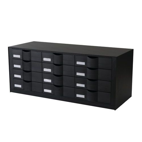 | Intitulé du produit | Bloc à tiroirs 3 colonnes, Nb de compartiments: 12, Case hauteur utile: 31 cm, Coloris: Noir |