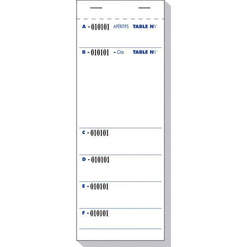 | Intitulé du produit | Bloc brasserie 50 feuillets autocopiants tripli 9,6x26 cm, Modèle: Bloc Brasserie tripli, Largeur: 96 mm |