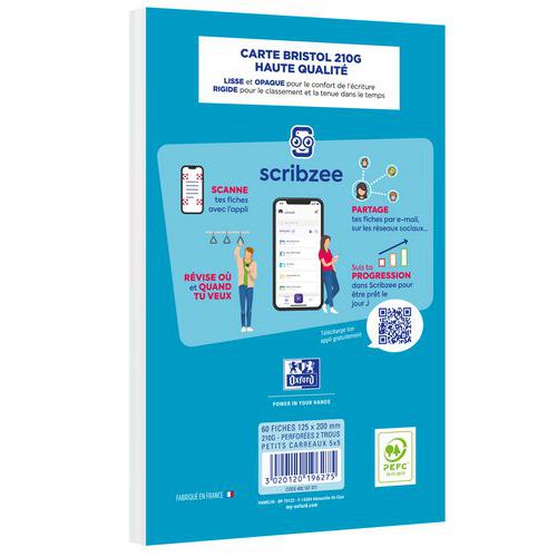 | Intitulé du produit | Bloc bristol 125x200 60 fiches perforees Q5/5/5 blanc, Grammage: 210 g/m², Nb de feuilles/ramette: 60 |