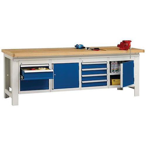 Caissons tiroirs ou porte aisés à monter sur châssis d'établi. Tiroirs avec glissières télescopiques extractibles à 100%. Sécurité maximale avec système de verrouillage central. Bloc-tiroirs et bloc-porte à poignées alu et porte-étiquette.