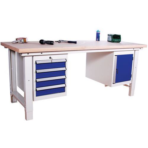 Caissons tiroirs ou porte aisés à monter sur châssis d'établi. Tiroirs avec glissières télescopiques extractibles à 100%. Sécurité maximale avec système de verrouillage central. Bloc-tiroirs et bloc-porte à poignées alu et porte-étiquette.
