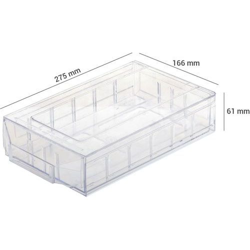 Bloc-tiroir en polystyrène cristal, Capacité: 2 L, Hauteur hors tout: 61 mm, Largeur hors tout: 166 mm