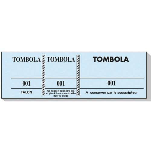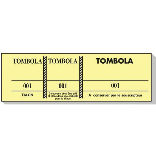 | Intitulé du produit | Bloc tombola 100 feuillets numérotés de 3 volets, Modèle: Bloc tombola, Produit recyclable: Oui - 100 % |