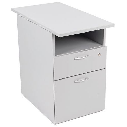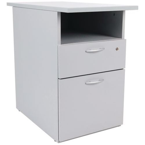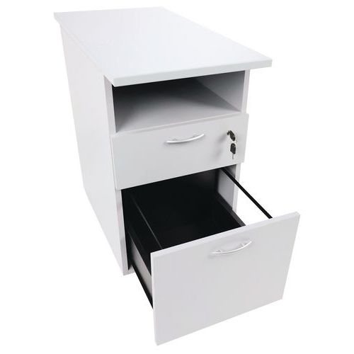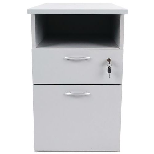 Caisson à hauteur de bureau avec poignées en aluminium. Muni d'une serrure sur un seul tiroir. Espace de rangement supplémentaire sous la tablette supérieure. Vos documents toujours à portée de main