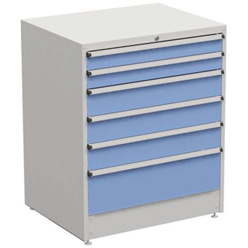 Ces blocs-tiroirs permettent d’optimiser le rangement et de conserver vos éléments bien en place. Un système de fermeture et d'ouverture sécurisé permet d’ouvrir un seul tiroir à la fois. Dès qu’un tiroir est ouvert, le système de verrouillage interdit l’ouverture de tout autre tiroir. Vous avez le choix entre trois hauteurs, et pouvez augmenter la hauteur ou la largeur grâce à différents aménagements en combinaisons des blocs tiroirs. Les blocs-tiroirs servent également de pieds pour tables de travail Workshop et les tiroirs se montent facilement sous une table de travail. Le bloc-tiroirs 55/66 comprend des roulettes en option, idéal pour les postes de travail mobiles. Le bloc-tiroirs à roulettes est livré avec un tapis en caoutchouc qui empêche les éléments posés sur le bloc tiroirs de glisser. Le tiroir de 50 mm de hauteur s’ouvre entièrement et offre une capacité de charge de 40 kg. Les autres tiroirs s’ouvrent à 85 % et ont une capacité de 80 kg. Tiroirs à ouverture unique sécuris Fabriqué en UE Charge maxi (kg) : 675 kg