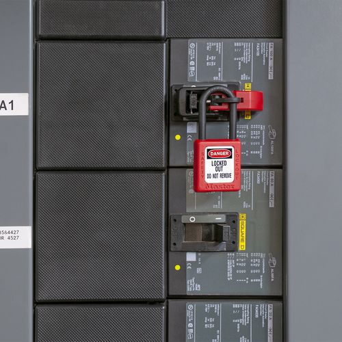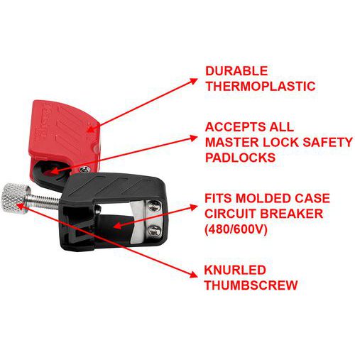 - Le bloque-disjoncteur Master Lock S3822 Grip Tight™ convient aux disjoncteurs à boitier moulé (480/600 V).