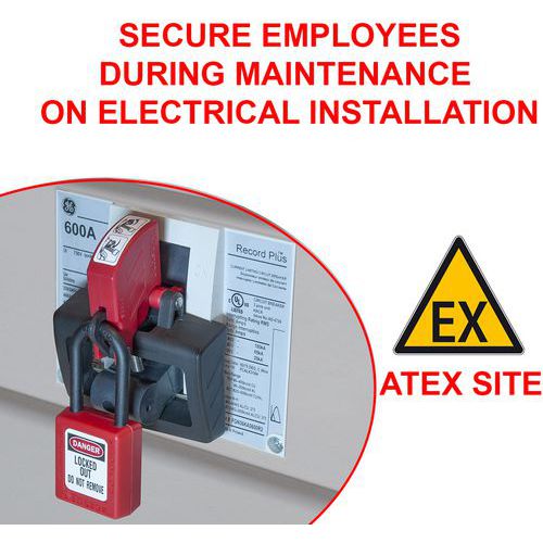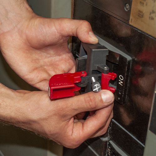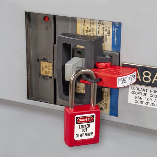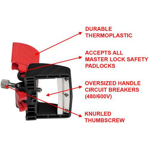 - Le bloque-disjoncteur Master Lock S3823 Grip Tight™ convient aux disjoncteurs à large poignée (480/600 V).