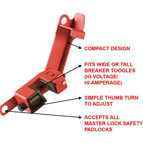 - Bloque disjoncteur Grip Tight pour disjoncteurs à bascule grands ou larges.