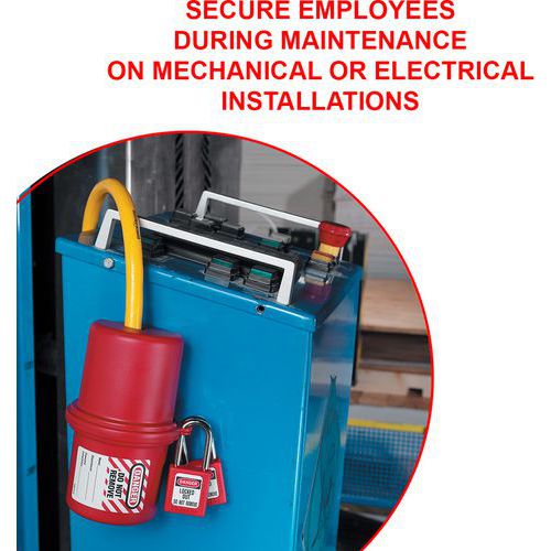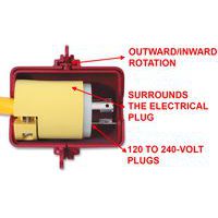 Le dispositif de consignation pour prises électriques accepte les cordons allant jusqu'à 19 mm de diamètre et une prise électrique allant jusqu'à 75 mm de diamètre.
