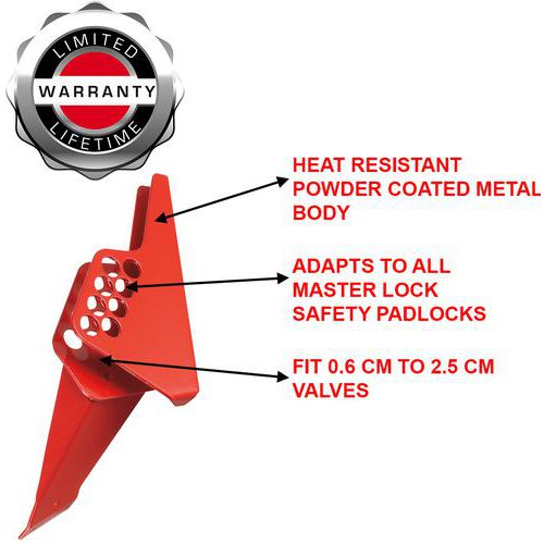 - Le dispositif s'adapte aux poignées quart de tour des vannes à bille manuelles pour empêcher une ouverture accidentelle.