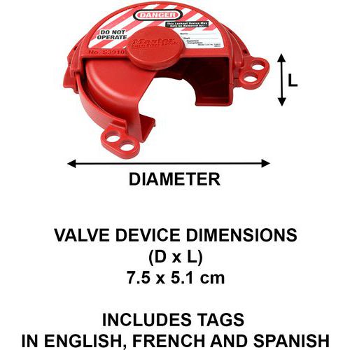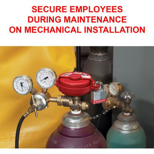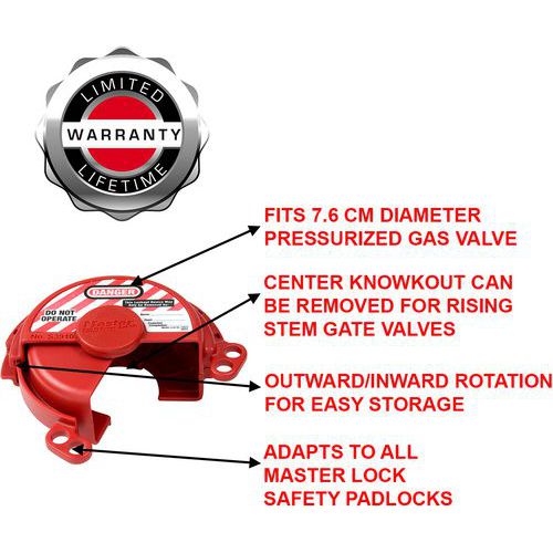Le dispositif de consignation de vannes de gaz sous pression Master Lock nº S3910 s'adapte à presque toutes les vannes jusqu'à 76 mm de diamètre et convient aux vannes avec ou sans garde.