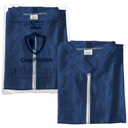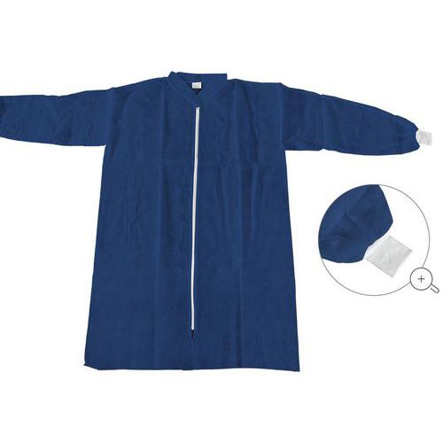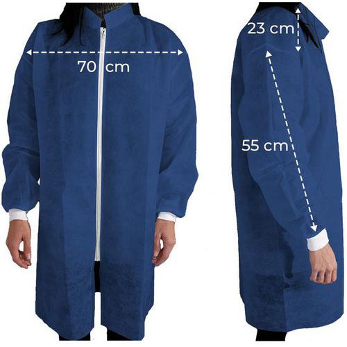 | Intitulé du produit | Blouse jetable XXL bleue en PP, Type de vêtement: Surblouse, Matière: Polypropylène, Coloris: Bleu foncé |