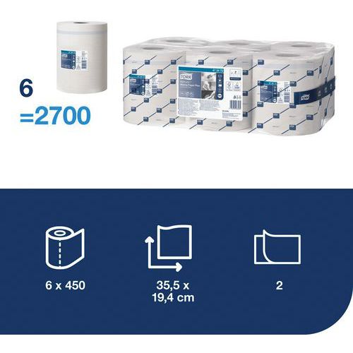 Bobine d'essuyage à devidage central Tork Reflex Plus, Coloris: Blanc, Type: Bobine de papier, Nb de plis: 2 Bobine d'essuyage à devidage central Tork Reflex Plus, Coloris: Blanc, Type: Bobine de papier, Nb de plis: 2