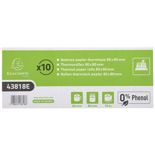 | Intitulé du produit | Bobine pour tickets de caisse 1 pli thermique sans PHENOL, Type: Bobines pour tickets de caisse |