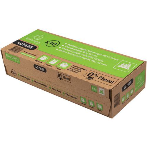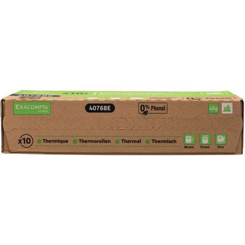| Intitulé du produit | Bobine pour tickets de caisse, Grammage: 48 g/m², Feuille longueur: 76 m, Rouleau longueur: 80 mm |