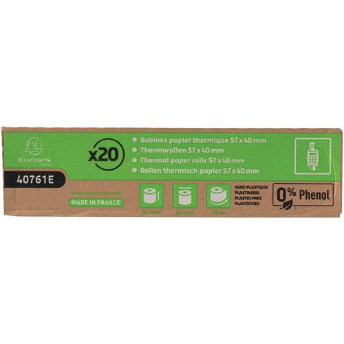 | Intitulé du produit | Bobine pour tickets de carte bancaire, Grammage: 55 g/m², Feuille largeur: 57 mm, Rouleau longueur: 18 m |