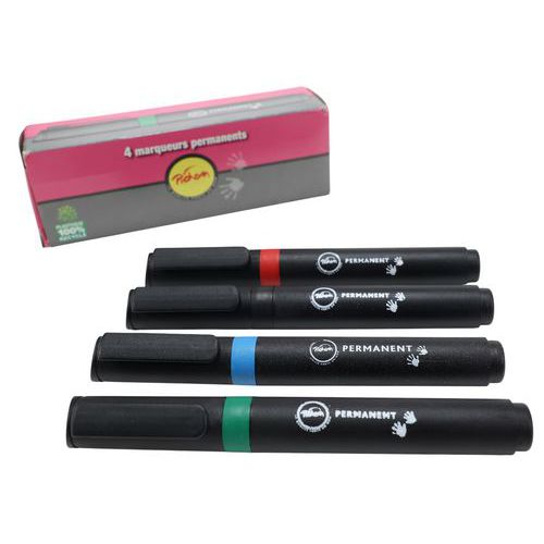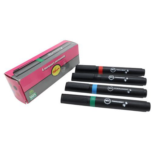 | Intitulé du produit | Boîte 4 marqueurs pointe biseautée, Encre coloris: Assorti, Rechargeable: non, Rétractable: non |