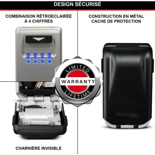 - Boîte à clé à combinaison avec construction en aluminium résistante aux intempéries.