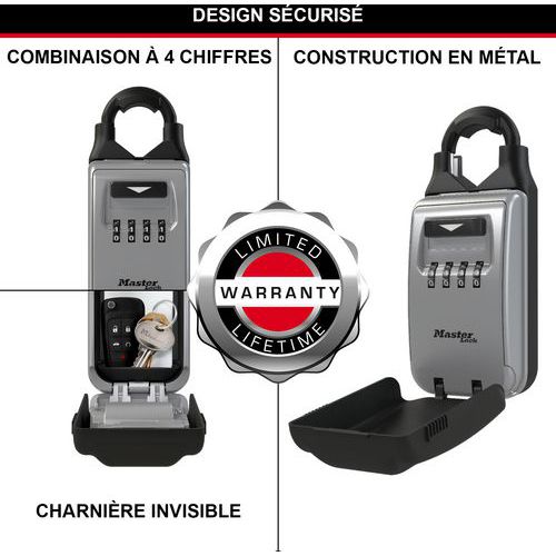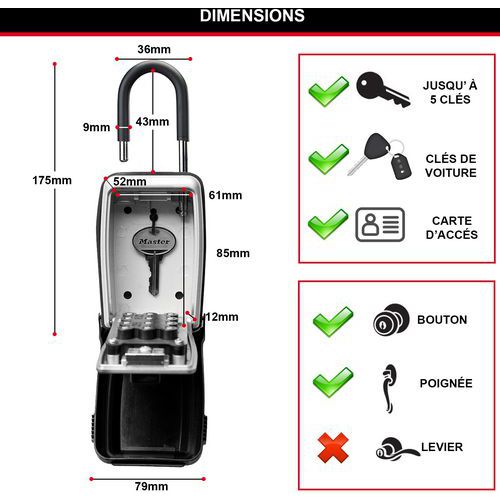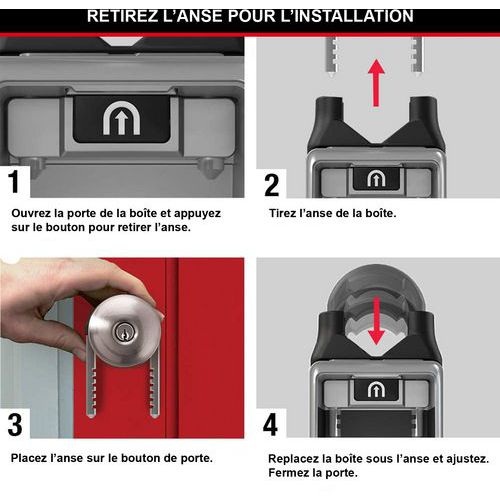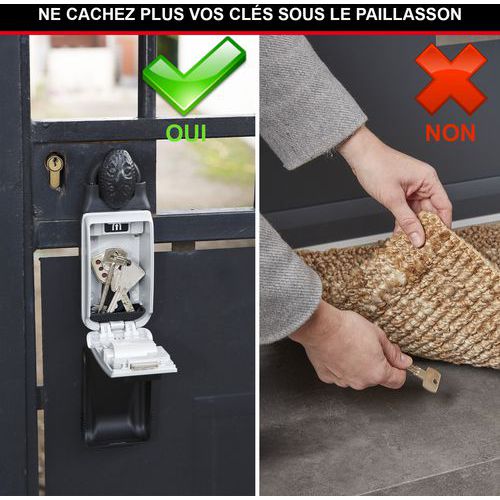 - Aucune fixation murale, la boîte à clés se fixe rapidement et facilement sur poignée de porte.