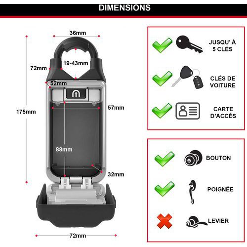 Boîte à clés à combinaison nº5422, Matériau: Aluminium, Hauteur hors tout: 170 mm, Largeur hors tout: 79 mm