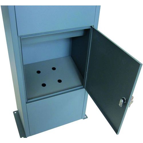 - En fermant le clapet, le courrier tombe dans le grand compartiment en-dessous qui est fermé par une serrure à cylindre.