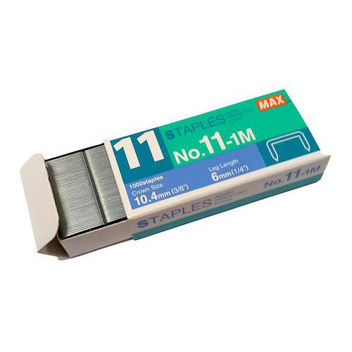 | Intitulé du produit | Boite de 1000 agrafes pour agrafeuse électique MAX BH11F, Hauteur: 6 mm, Largeur: 10.4 mm |