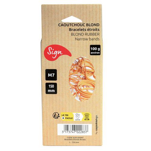 | Intitulé du produit | Boite de 100g de bracelets élastiques Ø 150 mm, Épaisseur: 2 mm, Poids du produit: 100 g, Diamètre Ø: 150 mm |