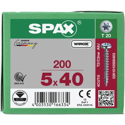 Boite de 200 vis universelles à tête ronde TX Ø 4 à 5 mm - Spax