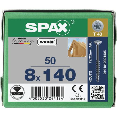 Boite de 50 vis à bois à tête fraisée TX Ø 8mm - Spax
