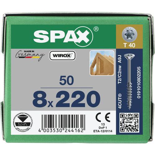 Boite de 50 vis à bois à tête fraisée TX Ø 8mm - Spax