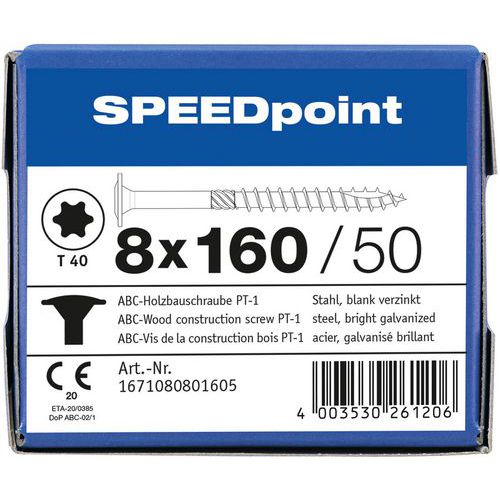 Boite de 50 vis tête disque à bois TX Ø 8 mm - SpeedPoint