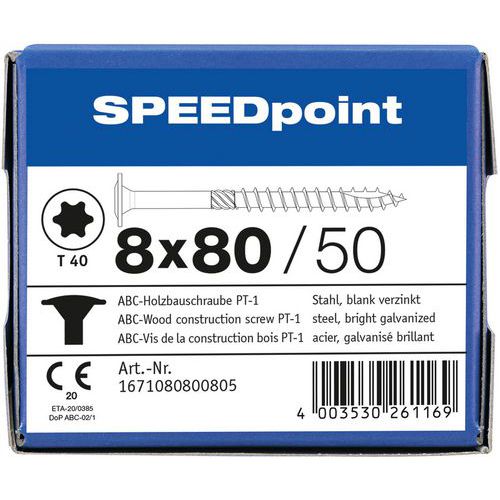 Boite de 50 vis tête disque à bois TX Ø 8 mm - SpeedPoint