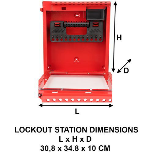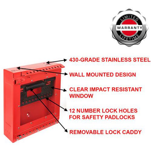 - Comporte également 12 trous externes destinés aux cadenas personnels, en plus d'un dernier destiné au cadenas de contrôle.