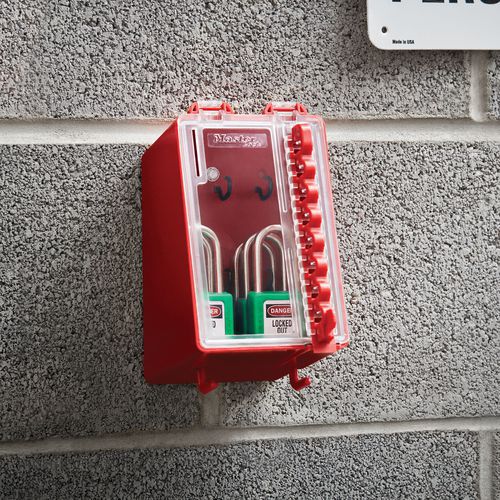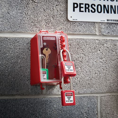 Boîte de consignation de groupe nº3570, Largeur: 101 mm, Longueur: 116 mm, Coloris: Rouge, Matériau: Acier