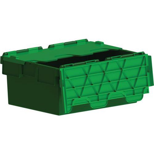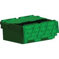 Boîte de manutention avec couvercle attaché Vert, Capacité: 40 L, Hauteur hors tout: 250 mm
